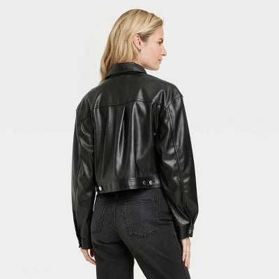 Step out in cool, edgy style when the temperatures dip with this Faux-Leather Moto Jacket from Universal Thread™. This long-sleeve moto jacket is crafted from midweight faux-leather material and tailored in a regular, mid-length fit for comfortable wear. It features a collared neckline with a button-down closure and long sleeves with barrel cuffs to add some personality to any outfit, while the buttoned flap pockets add functional style. Wear it with jeans, a tee and sneakers for a casual look, or dress things up with a dress or skirt-and-blouse combo and heels.
