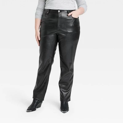 Channel some retro chic vibes with these High-Rise Faux-Leather 90’s Vintage Straight Jeans from Universal Thread™. These vintage jeans are made of black faux leather for a timeless look that captures the essence of the nineties. They feature a classic five-pocket design and a belt-loop waistband with a fly button and zipper closure for functional flair, plus a high-rise, straight-leg silhouette for a flattering look.