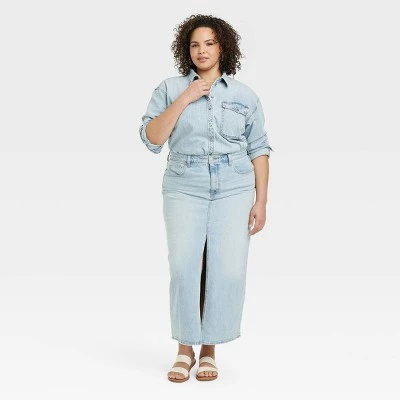 - Universal Thread oversized boyfriend shirt in light-wash denim
