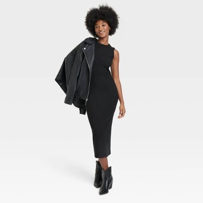 Bring a pop of texture to your casual closet with this Rib-Knit Midi Dress from Universal Thread™. Fashioned in a midi length, the sleeveless dress features a cool round neckline and ribbed detailing for a flattering fit. The lightweight fabric with added spandex keeps you moving through the day in absolute comfort, and the pull-on design allows for ease of wear. Simply pair it with your favorite sandals or block heels to complete the look.