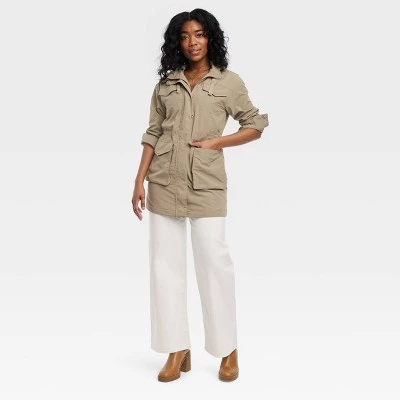 Enjoy drizzly days in comfort and style wearing this Utility Rain Jacket from Universal Thread™. Made of lightweight taffeta fabric with 100% recycled polyester lining, this brown jacket features a full-length zippered front, a snap-button storm flap, an attached hood with drawstring, an adjustable drawstring waist and single-cuff long sleeves to keep you warm and dry. Utility-inspired pockets with flaps complete the design and give you space for stashing on-the-go essentials.